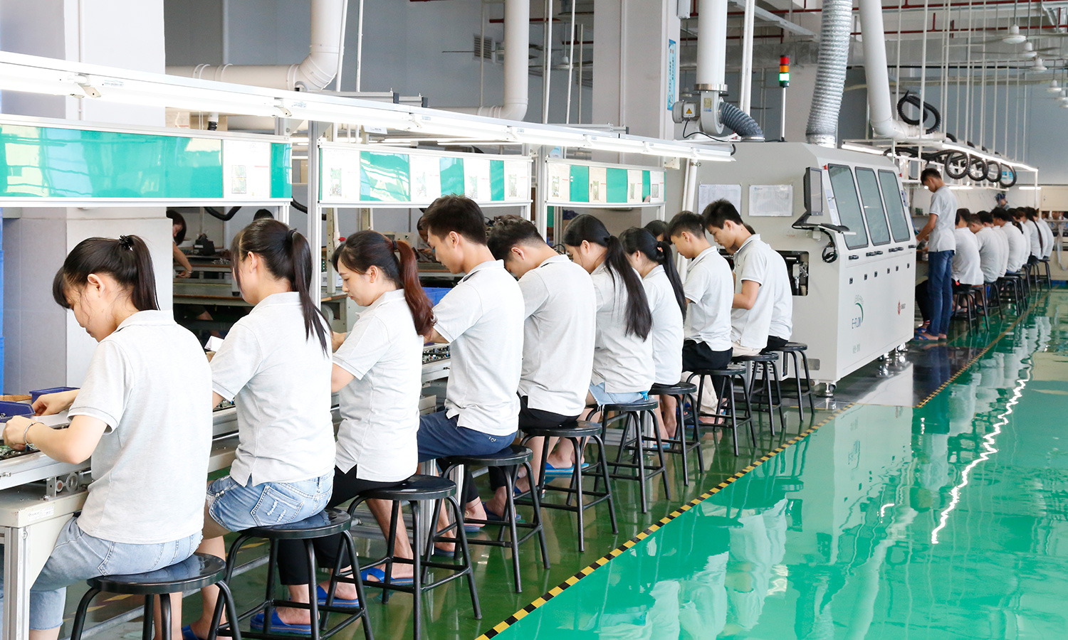 现有组装流水线2条现代化的生产线(可随时扩成4条),对太阳能控制器,逆变器,储能、开云手机入口、等工业产品组装经验丰富 ;能够生产绝大部分的数码电子产品,极强的综合生产能力,日产能达到1万PCS以上。防静电PVC空调车间,配备有老化房,测试房,成品测试隔音隔离房等,设备先进、完善,可进行各种产品镭雕、组装、老化、测试、包装等生产。